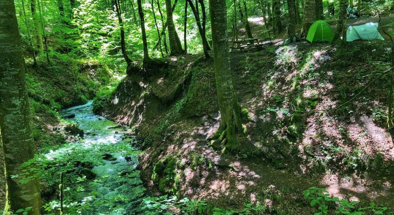 20 metre yukarıdan çadırların üstünü örten ulu ağaçlar yağmurun şiddetini azaltıyor, zeminin eğimli yapısı sayesinde sel tehlikesi de olmuyor.